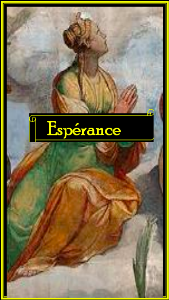 Par l'Espérance, nous désirons et nous attendons de Dieu, avec une ferme confiance, la vie éternelle et Son Aide pour y parvenir.
