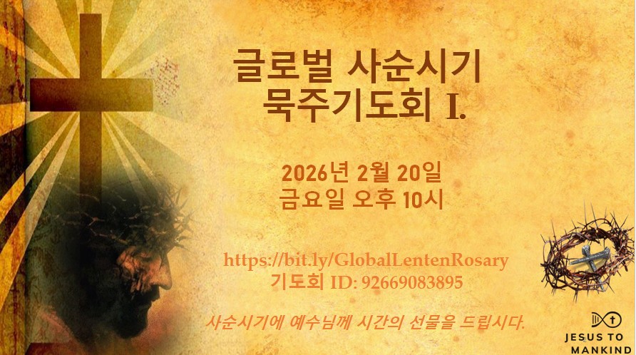 PS. 2월 20일 금요일부터 4월 3일 성금요일까지 사순시기의 매주 금요일마다 글로벌 사순시기 묵주기도회를 동일 참여링크에서 오후 10시에 개최합니다.