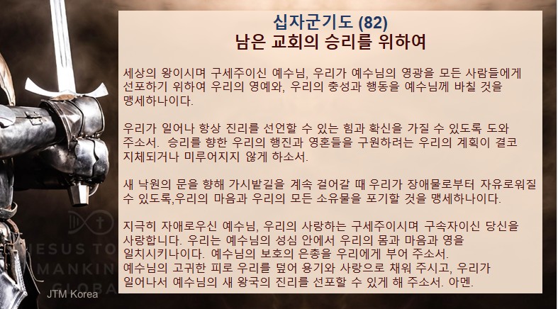 보라, 나를 거부하는 모든 사람에게 정의가 닥칠 것이라고 네가 세상에 선포할 때가 가까웠다. 나의 십자가상 고난의 진리를 따르는 모든 이에게 내 자비는 끝이 없다.